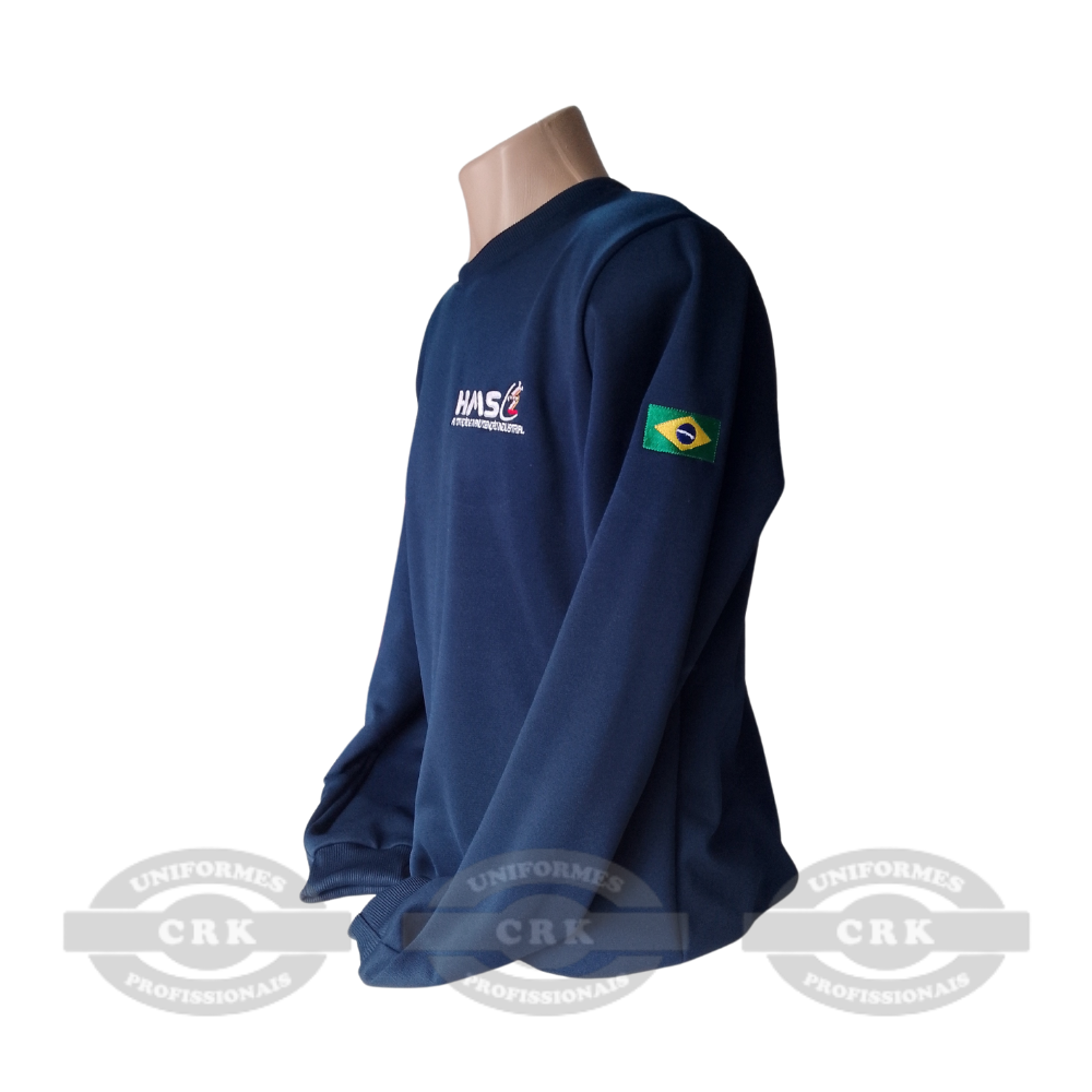 Blusa de Moletom Azul Marinho para Uniformes Profissionais – Modelo Fechado com Punho e Personalização Bordada