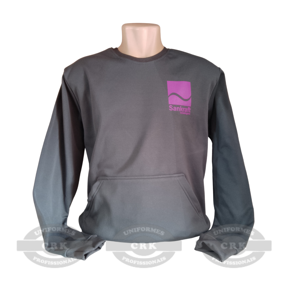 Blusa de Moletom Cinza com Bolso Canguru para Uniformes Profissionais – Modelo Fechado com Estampa Personalizada