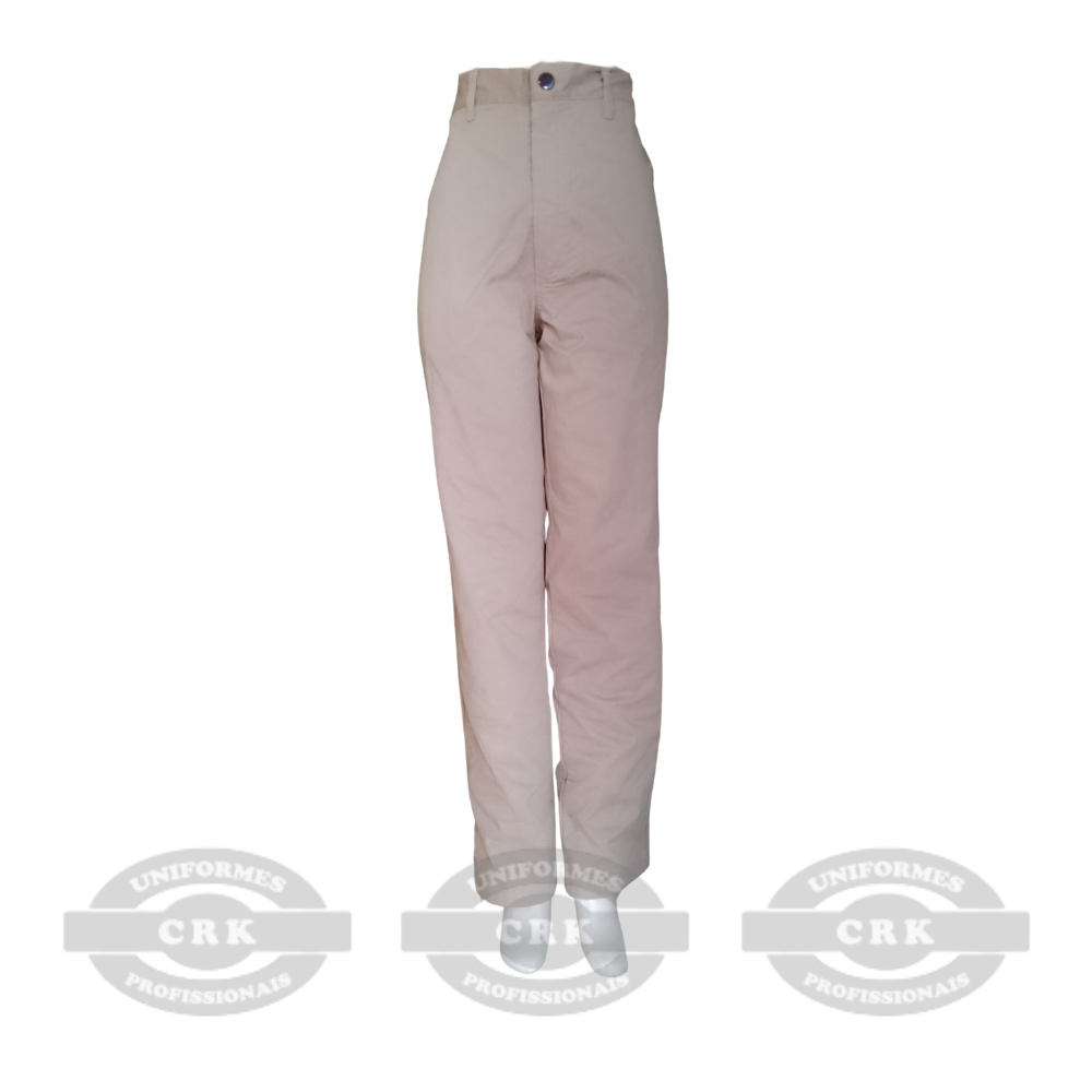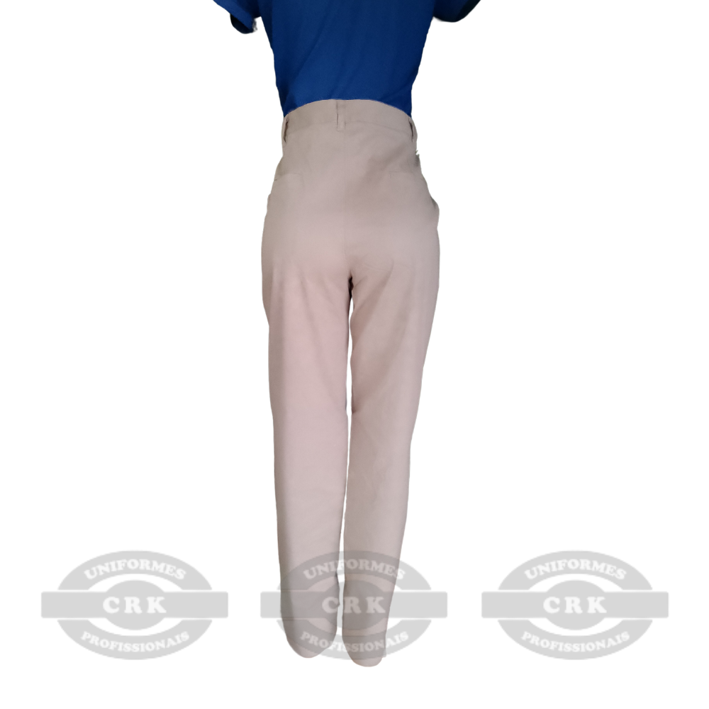 Calça Social Feminina Bege Cós Alto Uniformes Profissionais