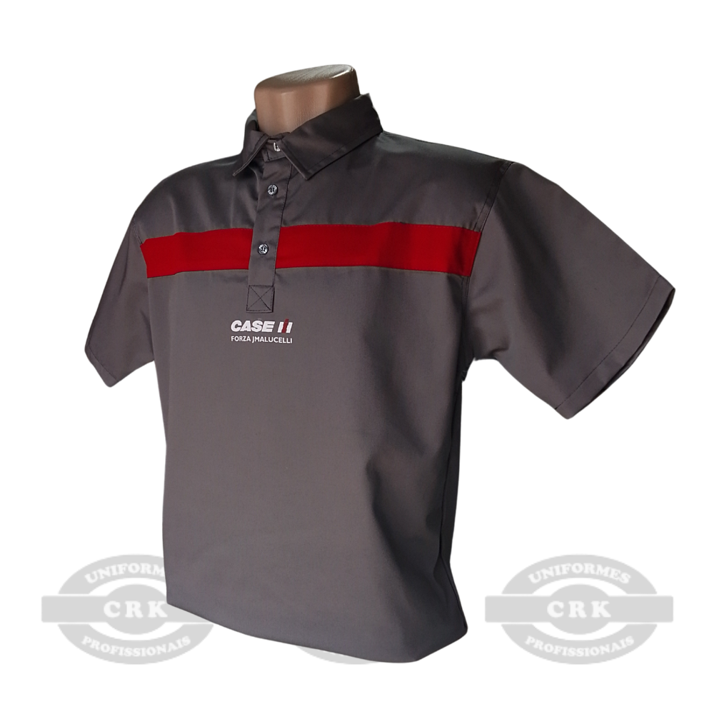 Faixa horizontal em cor contrastante: Detalhe visual aplicado no peito e nas costas, valorizando a identidade da empresa e destacando o uniforme de forma moderna e padronizada.