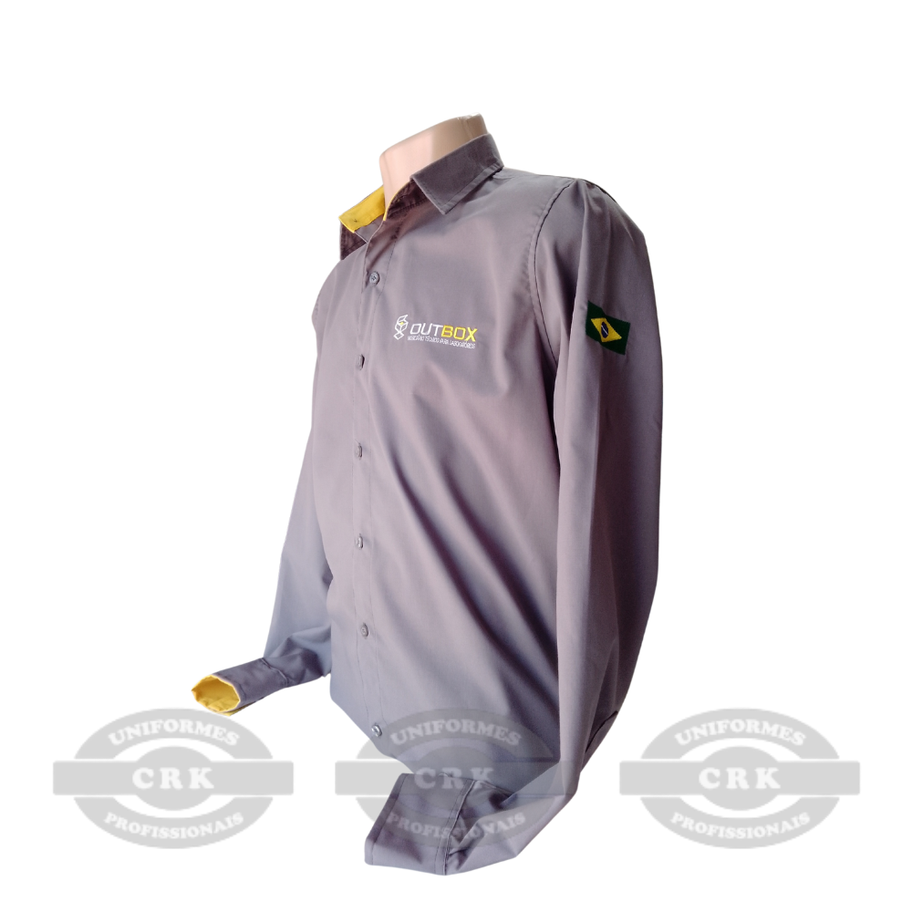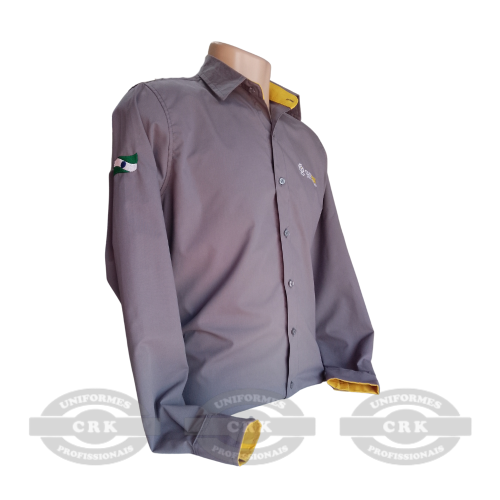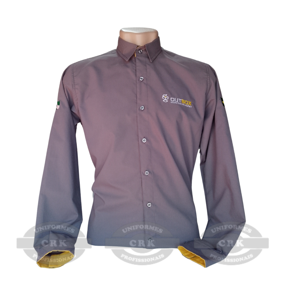 Camisa Social com Punho e Gola em Cores e Bordado Corporativo