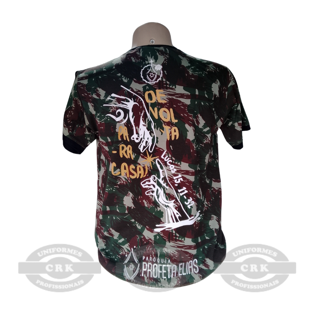 Estampa em alta definição: Impressão frontal e traseira com arte temática envolvente, que permite explorar símbolos, frases e elementos ligados ao movimento religioso ou missão. Todo o conteúdo visual pode ser personalizado conforme o projeto de cada grupo ou instituição.