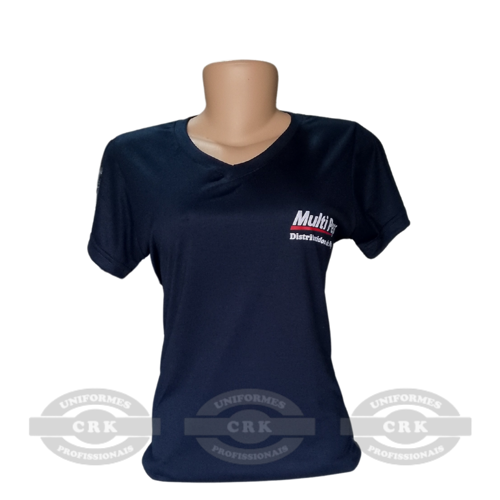 Modelagem anatômica e confortável: Com gola em V e mangas curtas, essa camiseta proporciona um caimento leve e confortável, ideal para o uso diário em ambientes corporativos, comerciais ou operacionais.