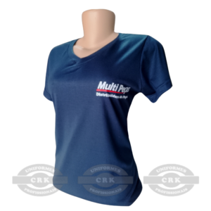 Essa camiseta personalizada une elegância e praticidade em um só uniforme. A combinação entre a modelagem com gola em V, tecido leve e estampa institucional em dois pontos estratégicos garante presença visual e conforto para a equipe. Uma peça ideal para empresas que desejam manter sua identidade visual bem representada no dia a dia, com qualidade e sob medida.