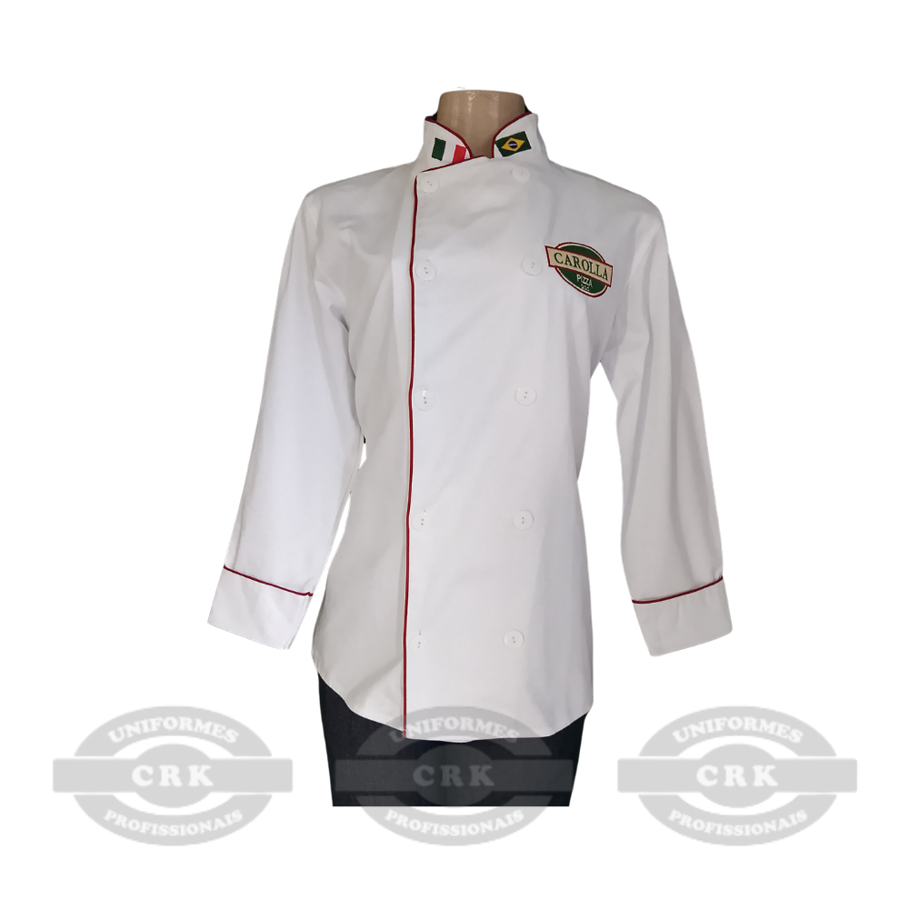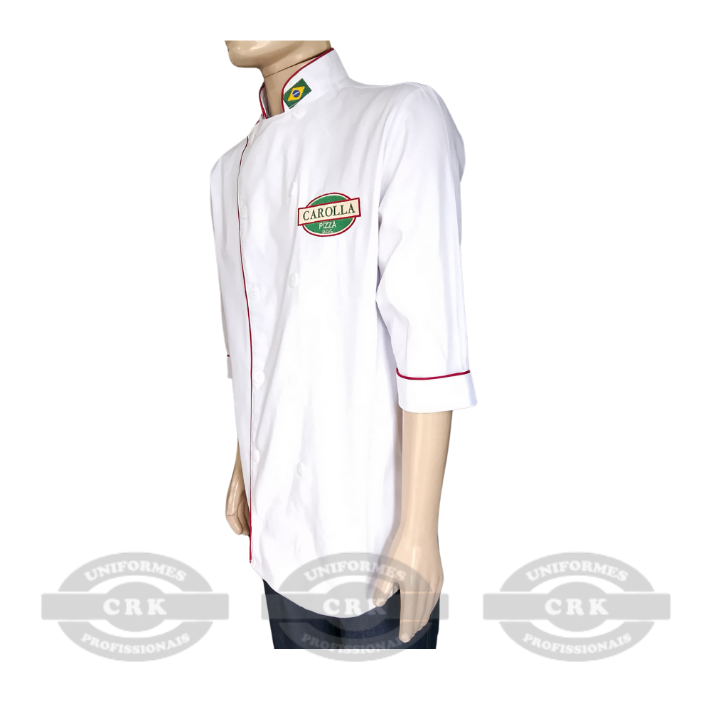 Modelagem tradicional com caimento impecável: Ideal para uso diário em cozinhas profissionais, oferecendo conforto e liberdade de movimentos.