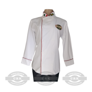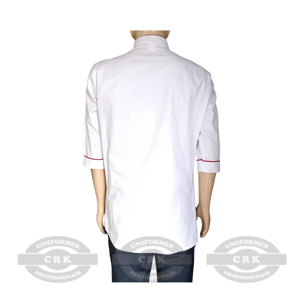 O Dolman Branco com Detalhes Vermelhos da CRK Uniformes é a escolha certa para estabelecimentos que prezam por padronização sem abrir mão do estilo. Seu design limpo com toques sutis de cor, aliado à personalização com logotipo, oferece um visual harmonioso e funcional para toda a equipe. Um uniforme que eleva a apresentação e fortalece a identidade do time.