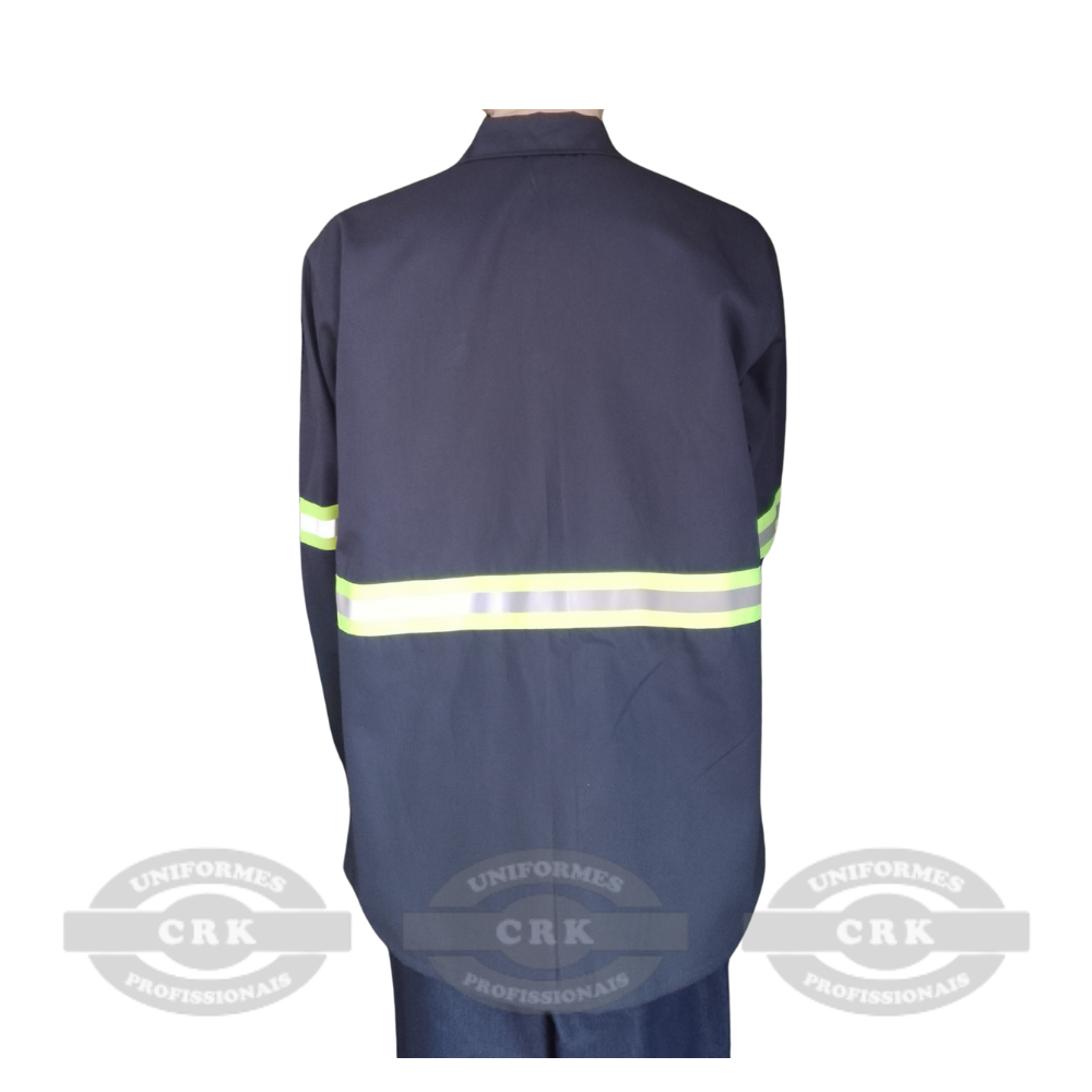 Faixas refletivas aplicadas no tórax e braços: Proporcionam maior visibilidade em ambientes com baixa luminosidade ou durante o trabalho noturno, reforçando a segurança do colaborador.
