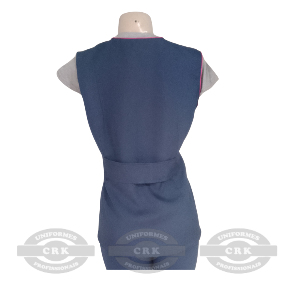 Fechamento com botões frontais contrastantes: Toque de cor que valoriza o visual, transmitindo alegria e cuidado com a apresentação.