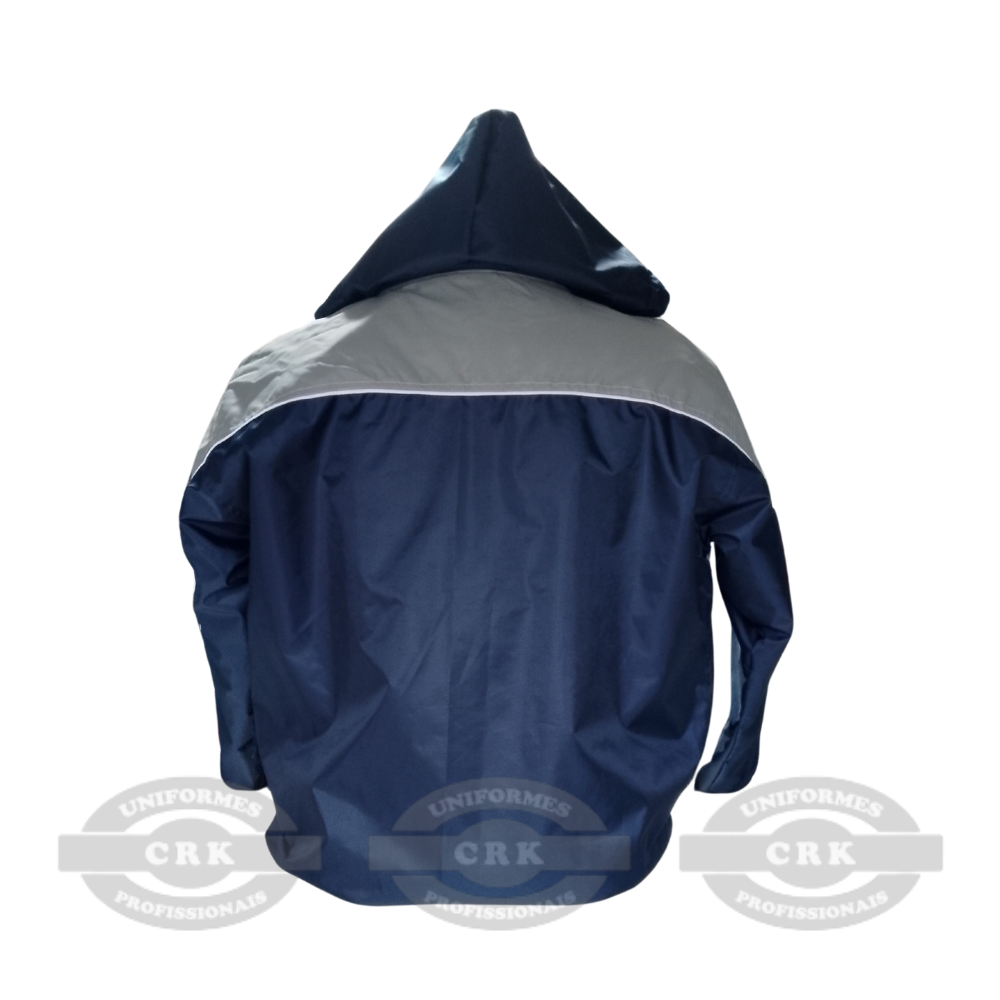 Acabamento funcional: Com punhos ajustados e capuz protetor, a jaqueta oferece maior vedação contra o frio e a chuva, contribuindo para o bem-estar durante o expediente.